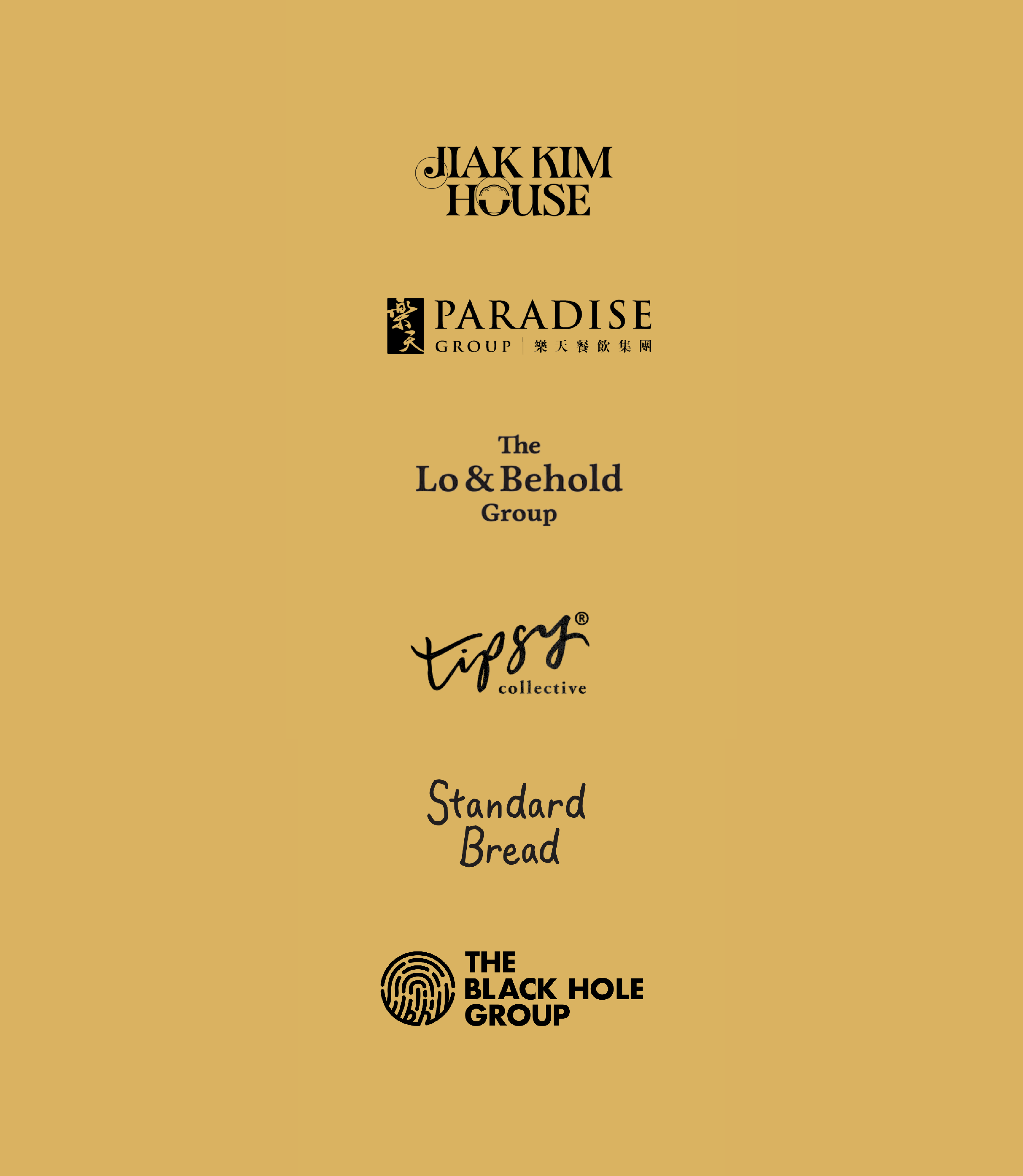 Notable partners include Paradise Group, Jiak Kim House, Lo & Behold Group, Tipsy Collective, Standard Bread, and The Black Hole Group.